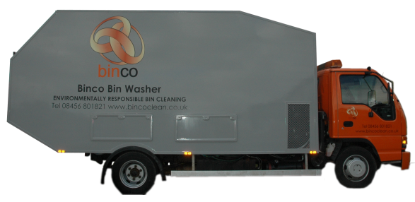 Manages waste while washing Binco's compact, purpose built 7.5 tonne truck is the only one in the UK able to handle waste during the washing process. The system removes rubbish during the cleaning process and returns it on completion, no need to wait for empty bins. This allows for maximum efficiencies when route planning. Enhanced time management and fuel economies means more bins can be cleaned for less.